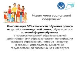 Реализации дополнительной меры Социальной поддержки в виде компенсации 50 % стоимости обучения одного из детей из многодетной семьи, обучающегося по очной форме обучения в проф. образовательной организации