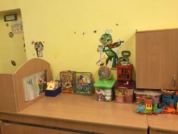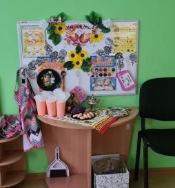Микроцентр «Игровая зона», направлен на реализацию ребенком полученных и имеющихся знаний об окружающем мире в игре. Цент оснащен атрибутами для с-р игр по возрасту детей («Семья», «Больница», «Магазин», «Школа», «Парикмахерская», «Почта»), предметами-заместителями.