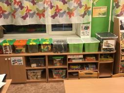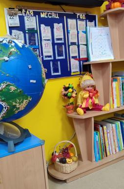 «Уголок природы» направлен на расширение познавательного опыта, его использование в трудовой деятельности. Оснащен календарем природы (2 мл, ср, ст, подг гр), комнатными растениями в соответствии с возрастными рекомендациями, сезонными материалами, стендами с сменяющимся материалом на экологическую тематику, макеты, литературой природоведческого содержания, наборами картинок, материалами для проведения элементарных опытов, обучающие и дидактические игры по экологии, инвентарь для трудовой деятельности, природный и бросовый материал, материал по астрономии (ст, подг гр.).