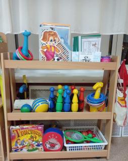 «Уголок развивающих игр» направлен на расширение познавательного сенсорного опыта детей. Оснащен дидактическими материалами по сенсорному воспитанию (дидактические игры, настольно-печатные игры, познавательный материал, материал для детского экспериментирования.