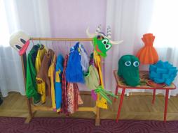«Театрализованный уголок» направлен на развитие творческих способностей ребенка, стремление проявить себя в играх-драматизациях. Уголок оснащен ширмами, элементами костюмов, различными видами театров (в соответствии с возрастом), предметами декораций.
